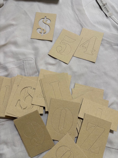 ①ステンシルでプリントするスペルを決める。