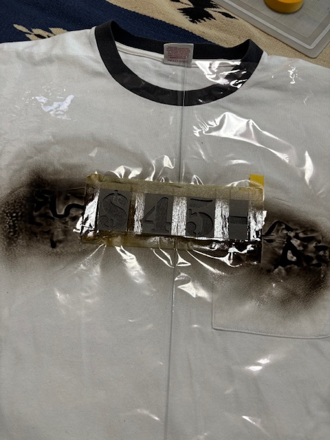 ③Tシャツに重ね合わせてスプレーを吹きかけた際に周りに色が